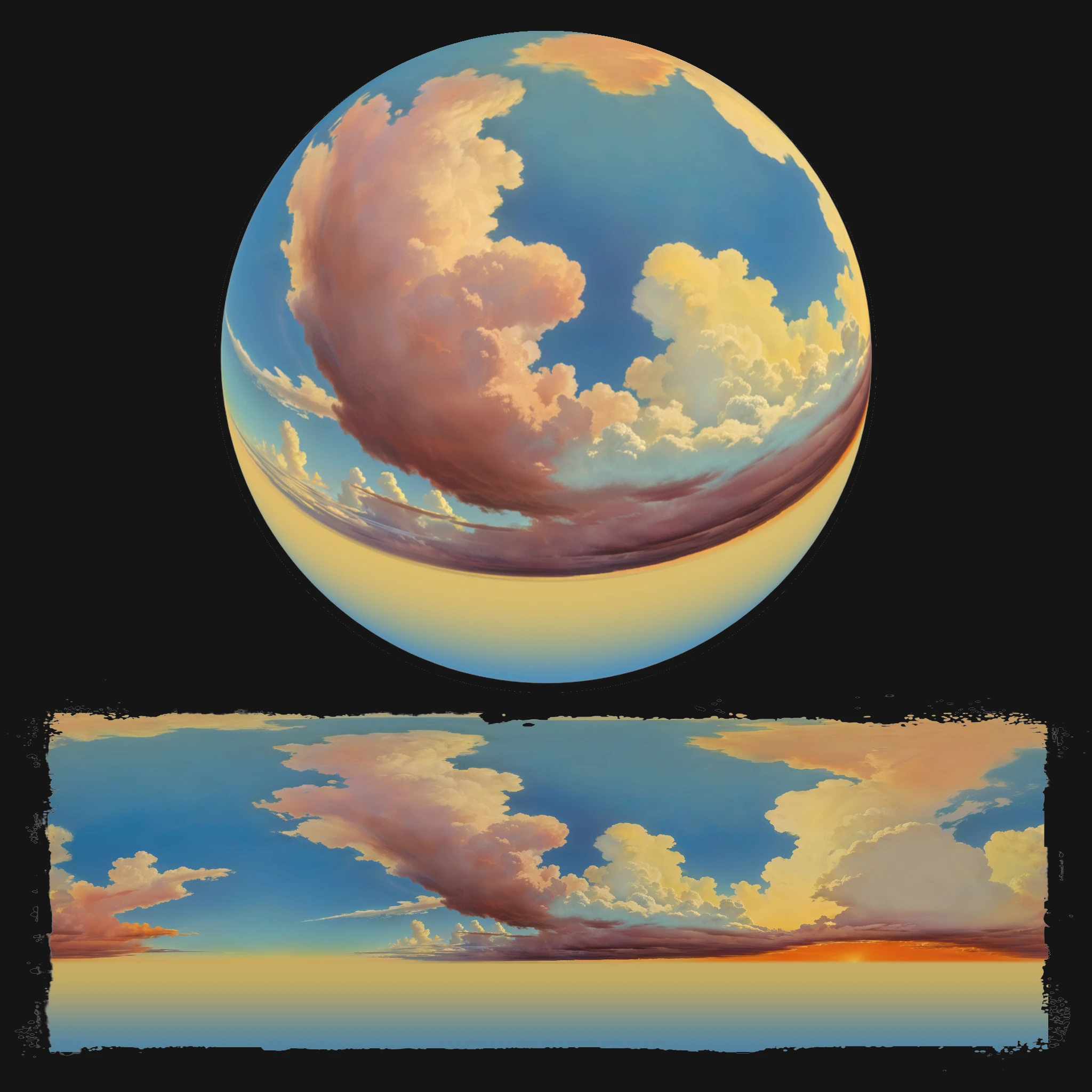 Gen AI used combined with Traditional Painting Methods in creation of all Skybox. For reference only.